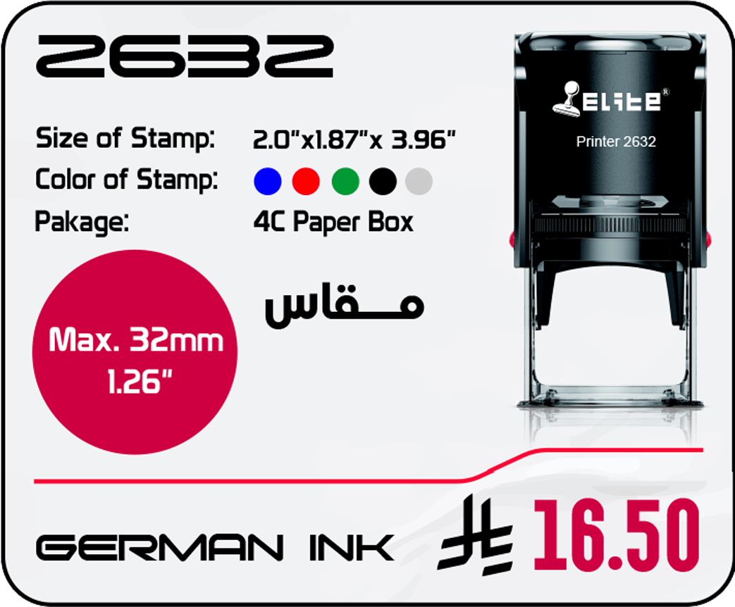 Size of Stamp: 2.0″ × 1.87″ × 3.96″
